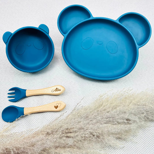 Perché la sicurezza del bambino viene prima di tutto: la nostra stoviglia in silicone alimentare, senza sostanze nocive, Ú infrangibile e pratica per i suoi primi pasti.