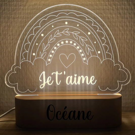 Luce notturna personalizzata per bambini con nome in legno o LED