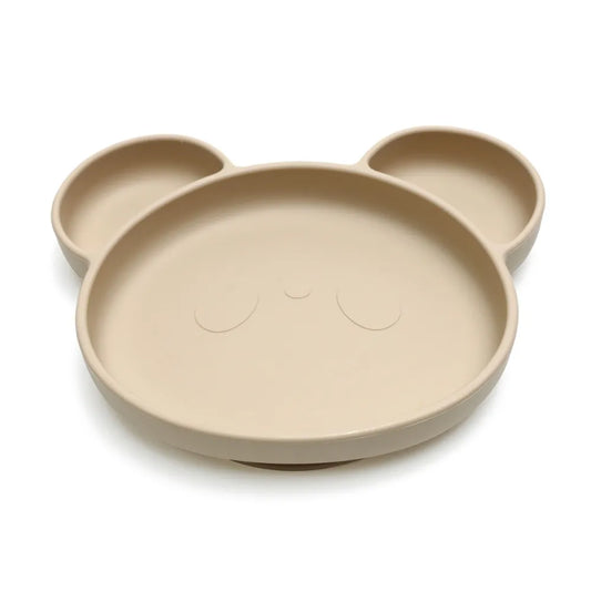 Piatto per bambini in silicone a forma di panda beige - Stoviglie antiscivolo