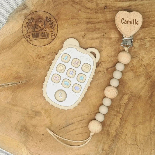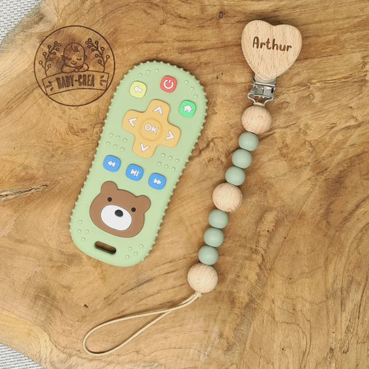 Set regalo personalizzato per neonati: clip per ciuccio e giocattolo per la dentizione con telecomando