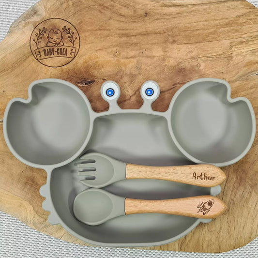 Set di pasti per bambini personalizzato: piatto a forma di granchio e posate incise