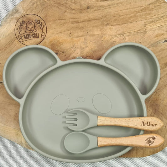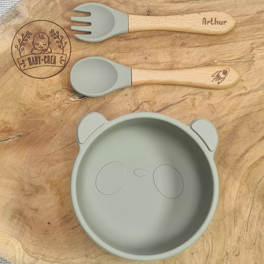 Ciotola con ventosa a forma di panda e posate in silicone personalizzate: pasti sicuri per il tuo bambino
