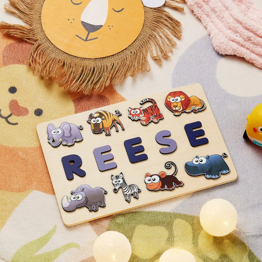 Puzzle personalizzato in legno con nome – Animali della giungla