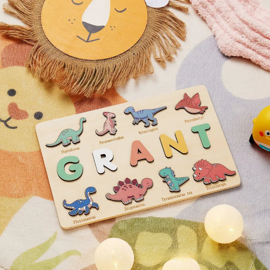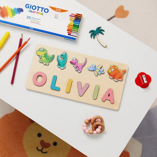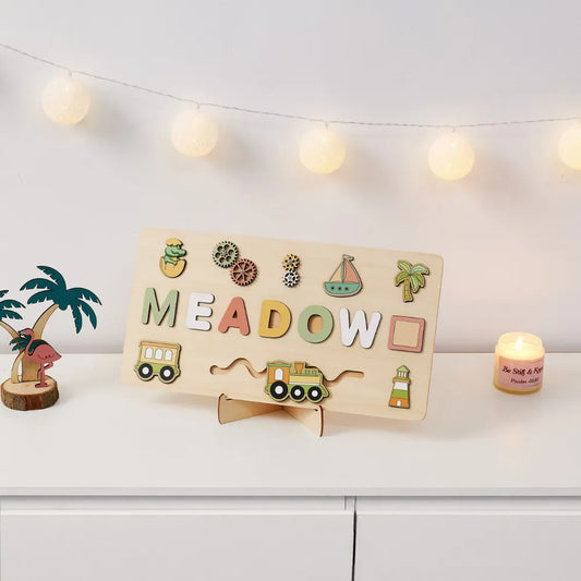 Puzzle personalizzato in legno con nome – Tema Trasporti e Colori