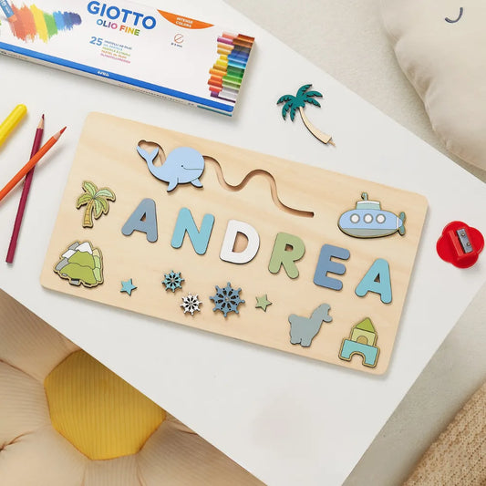 Puzzle personalizzato in legno con nome – Tema natura e mare