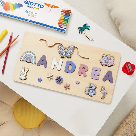 Puzzle personalizzato in legno con nome – Tema Dolcezza e Fiori