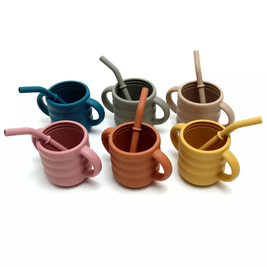 Tazza per l'allenamento del bambino - Verde oliva - Silicone morbido ed ergonomico